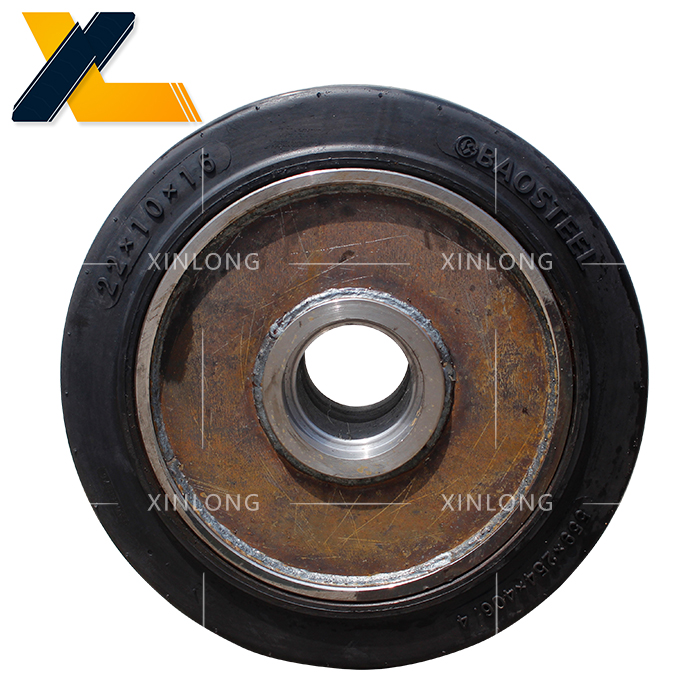 将堆高机实心轮脸面,然后将堆高机内轮全吊起,将螺孔对准个螺栓,放下内轮铜并检查内轮铜已放贴实,装入螺母到栓头部,然后用8-10公斤风炮机或气动冲击扳,手预拧紧到硬接触;使用810公斤风炮机或扭矩扳手顺时针、交错、对称分多次次拧紧轮毂母,直至全部达到力矩标准